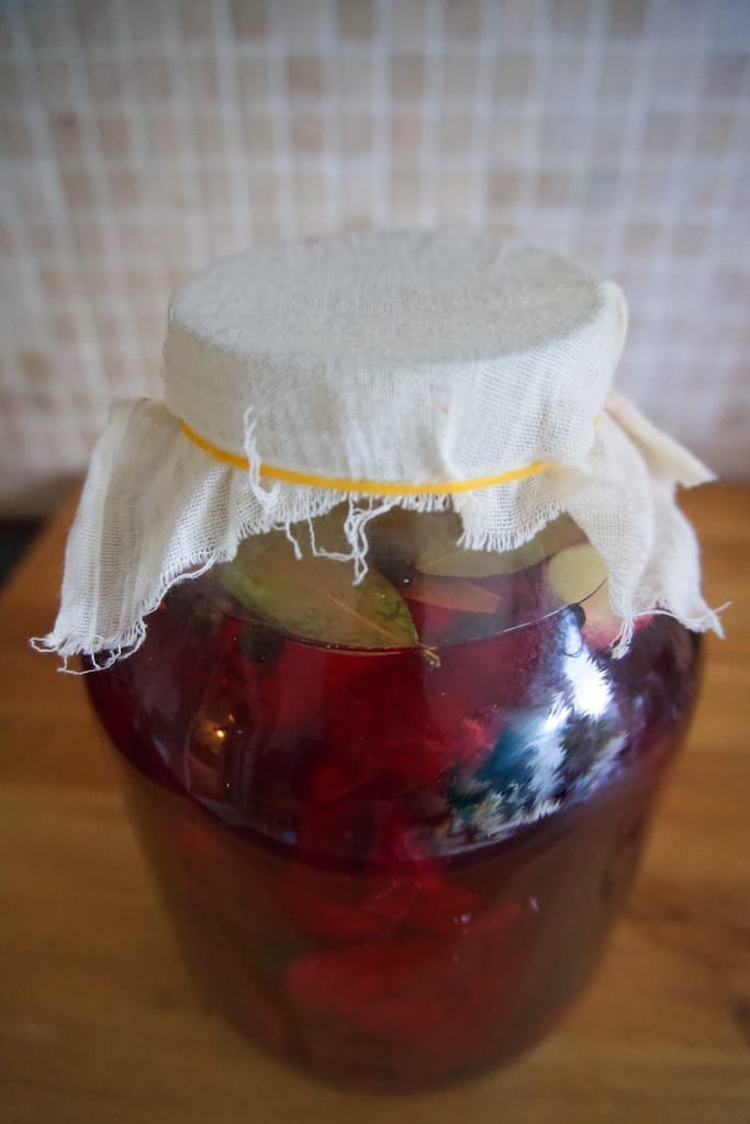 All you need to ferment your own beetroot juice is just a bunch of beetroots, a large jar and some spices you probably already have in your cupboard.
